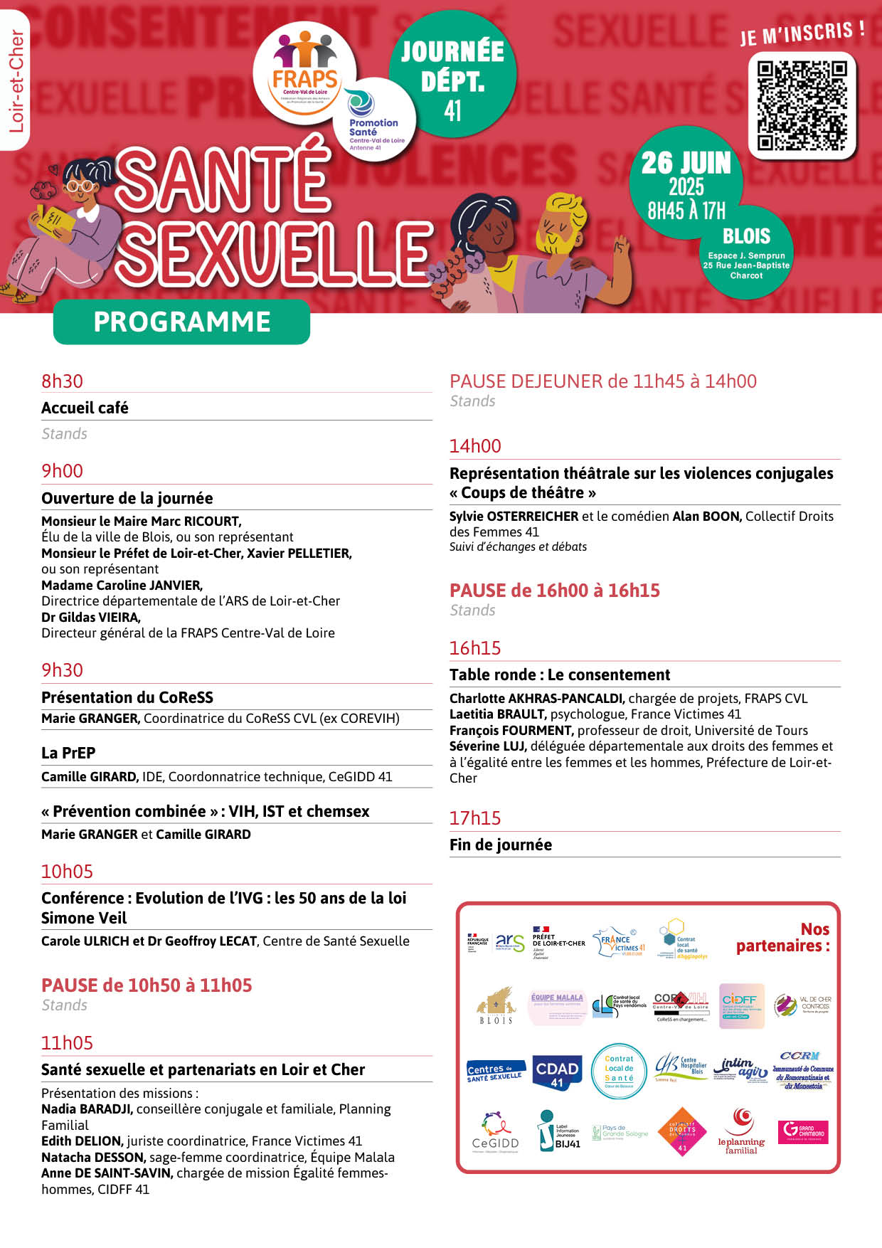Journée départementale FRAPS 41 «Santé sexuelle» La FRAPS Promotion Santé 41 a organisé une journée départementale le 26 juin 2025 sur le thème « Santé sexuelle ». Retour en images Visuels de l'événement